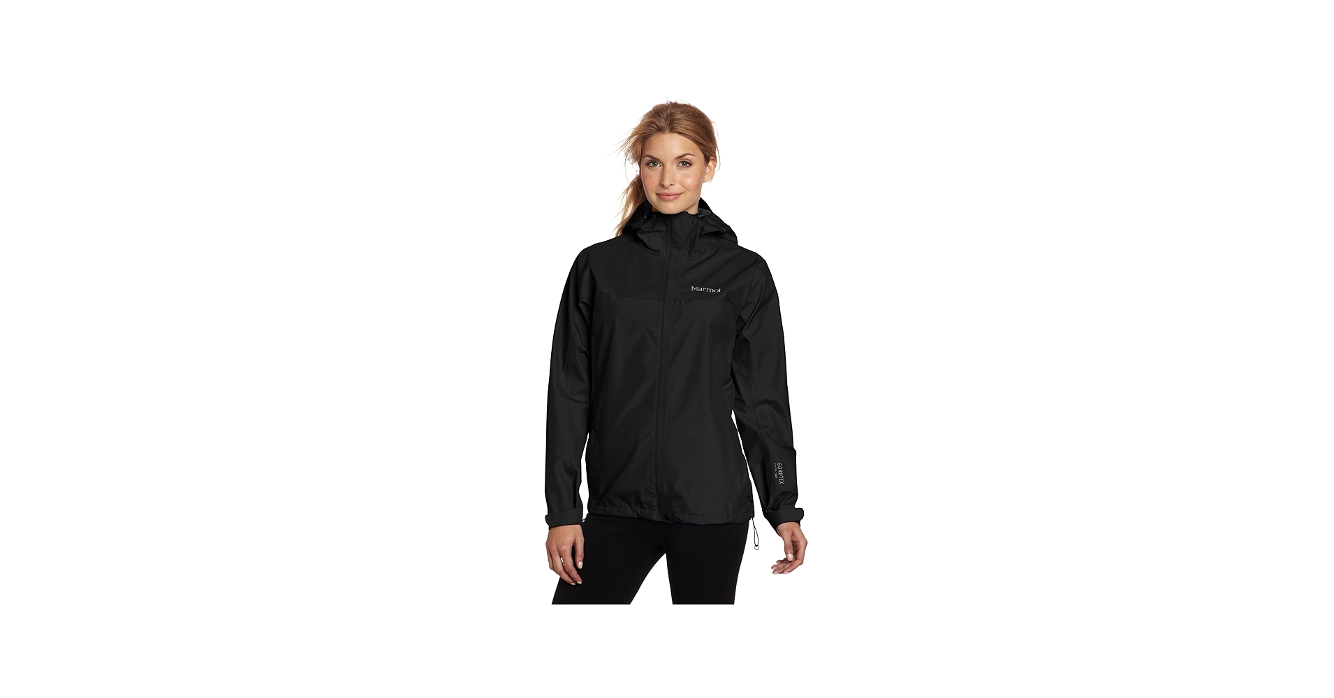 モンベルのレインダンサーレディースには、フードがついています。そのフードの上にもベルクロがついていますので、ベルクロでフードを調節すれば、フードがたれさがって視界を悪くすることはありません。